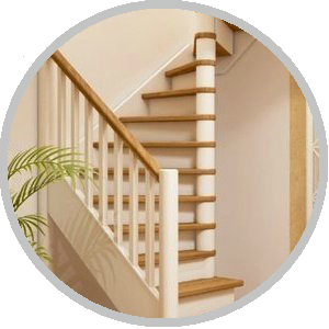 Винтовая лестница на 180 градусов с забежными ступенями.