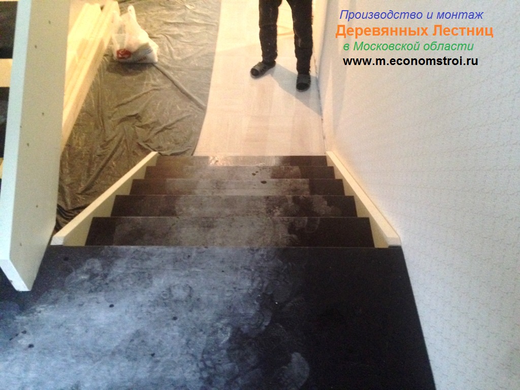 Некоторые этапы установки двух лестниц в деревянном доме из клееного бруса.